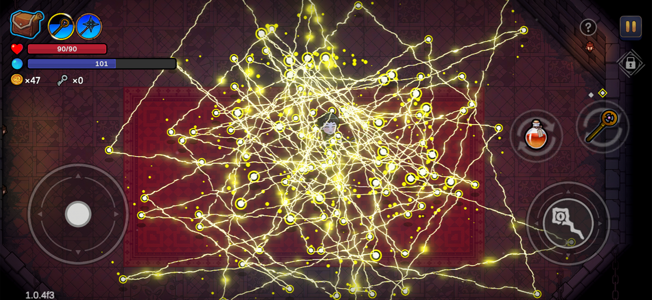手游版完整的保留了PC端的核心玩法与叙事框架,玩家将扮演误入异界的勇者,通过拔出传说法杖开启对抗古神的旅程。《魔法工艺》的核心魅力在于其“魔法编程”系统,在手游版中,玩家依旧可以使用超过100种法术符文自由组合,例如分裂、旋转、弹射、穿透等基础能力,还有诸如悬停、追踪目标、触发连携等前置效果,在将这些机制彼此叠加后,创造出如“追踪+弹射+分裂”等创意无限的复合型法术。