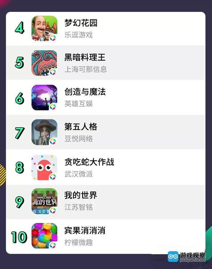 国民休闲游戏《开心消消乐》成功蝉联热玩单机榜首,高度自由的3D沙盒游戏《迷你世界》紧随其后位居第二。