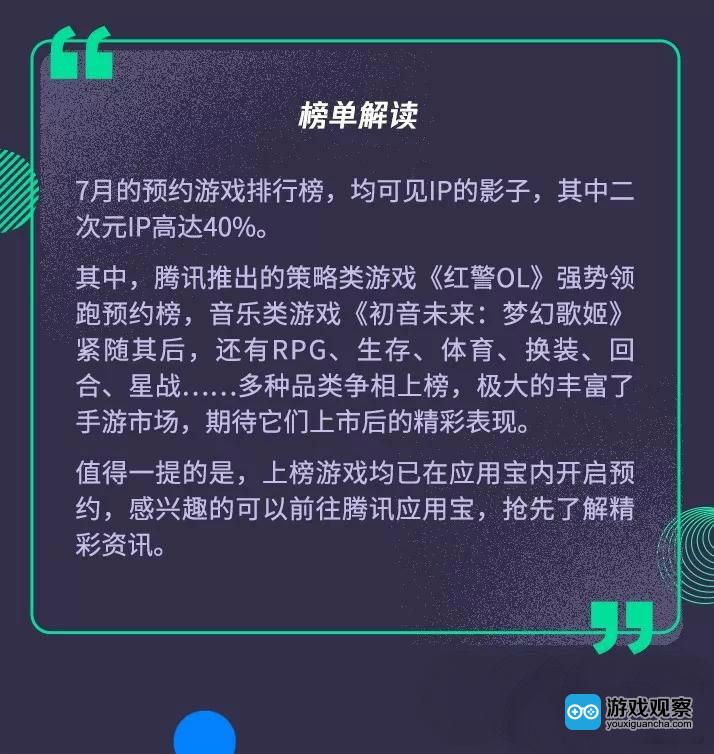 7月的预约游戏排行榜,均可见IP的影子,其中二次元IP高达40%。